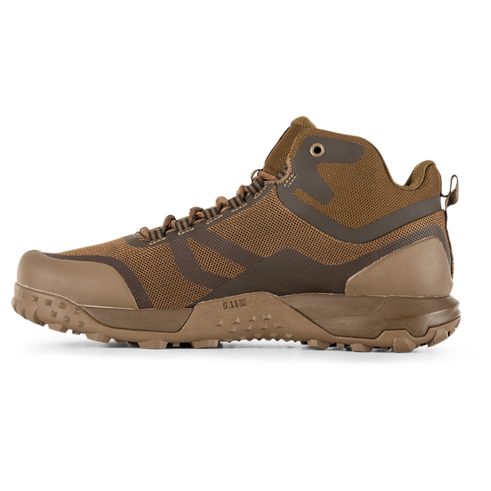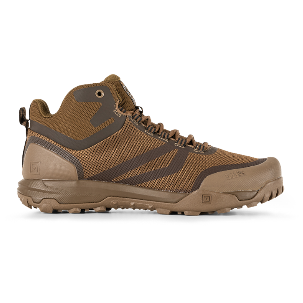 5.11 Tactical A.T.L.A.S. Mid - Coyote Boot features a load assistance system that will mitigate the rigors of a heavy load bearing job. These mid-height boots have 3D molded TRP toe and heel protection, a welded mesh upper, and a high traction outsole to keep you comfortable and safe while on the job.