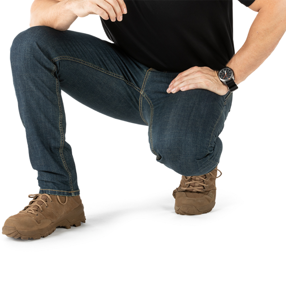 After a decade of research and development, 5.11® introduces a jean that is tactically tough, stylish, and engineered for everyday wear. Designed to carry you seamlessly from the backcountry to the briefing room, the Defender-Flex Jean is fully CCW (Concealed Carry Weapon) ready, ensuring you never have to compromise between style and functionality. Crafted from premium mechanical stretch denim, it delivers discreet tactical utility and superior recovery without sacrificing a clean, professional look.