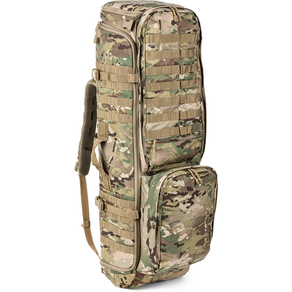 Designed in collaboration with leading SWAT and sniper teams, the RUSH® Sierra One is a specialized 62-liter pack engineered for precision rifle and heavy gear transport. It features a unique split-center format that accommodates a folding-stock rifle (up to 36" OAL) on one side and a tripod or other essential kit on the other.