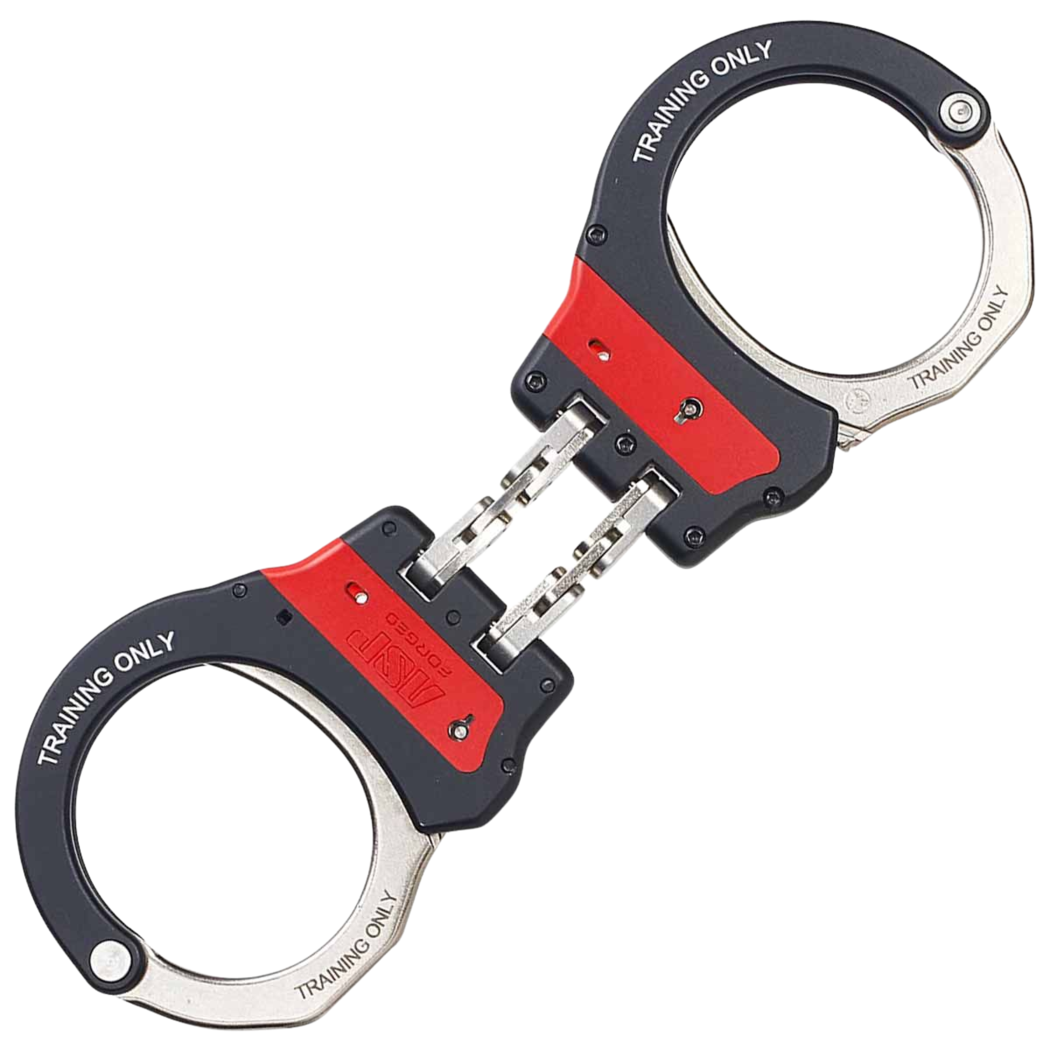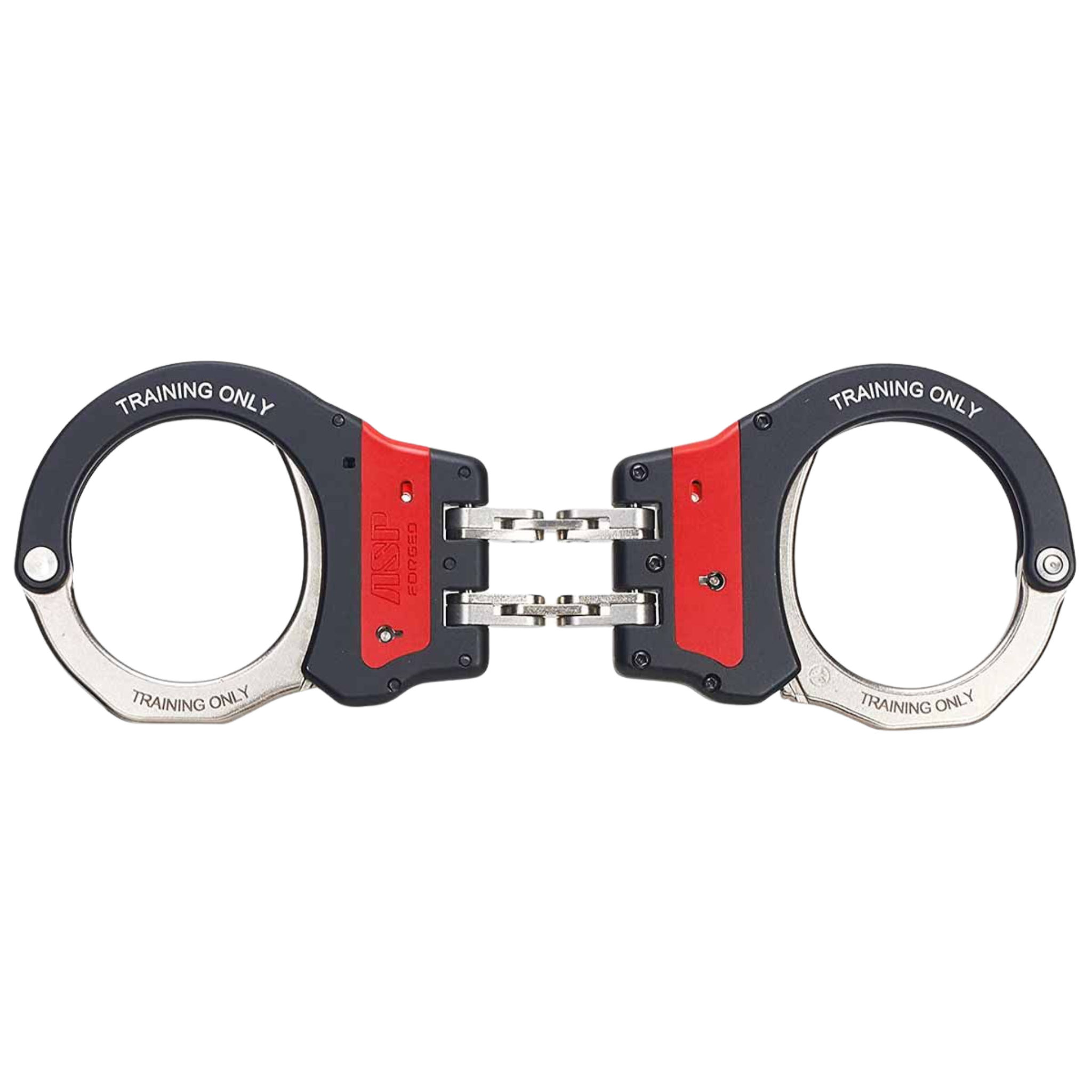 Finished in high‑visibility red, these hinged training cuffs are instantly recognisable as a training aid while still supporting authentic rock‑and‑lock handcuffing techniques. They can be rapidly removed using the rotary release method and feature a training‑specific pawl that disengages under continuous back pressure—allowing cuffed students to safely self‑release by rolling the wrists.