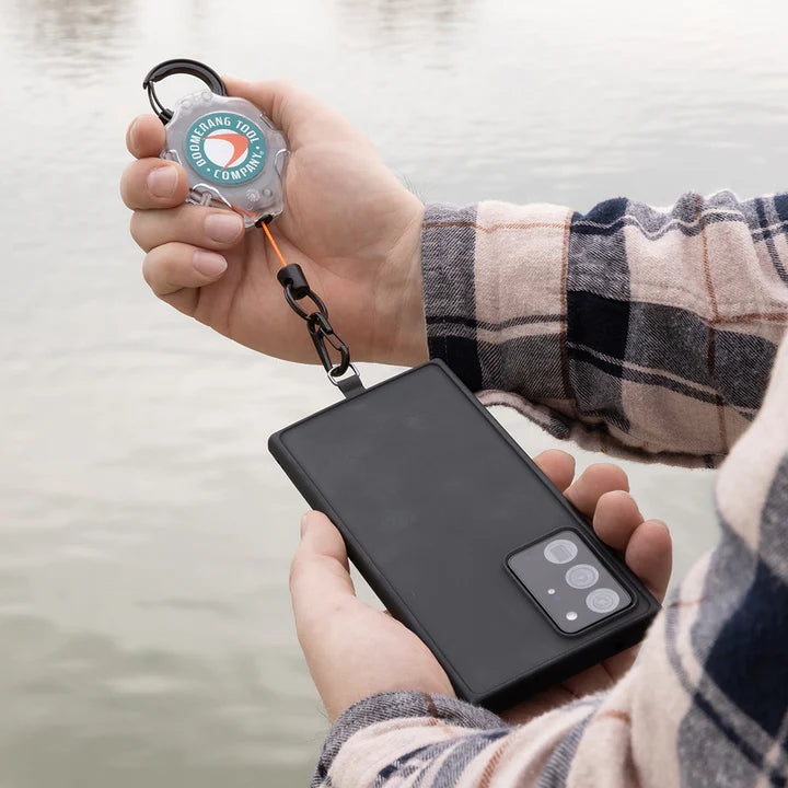 The Boomerang Tool Company Ratch-It™ Retractable Cell Phone Tether is a simple yet highly effective way to prevent your phone from being dropped, lost, or stolen. Whether you're hiking rugged trails, navigating crowded public spaces, or traveling off the grid, this tether keeps your device securely attached and easily accessible.