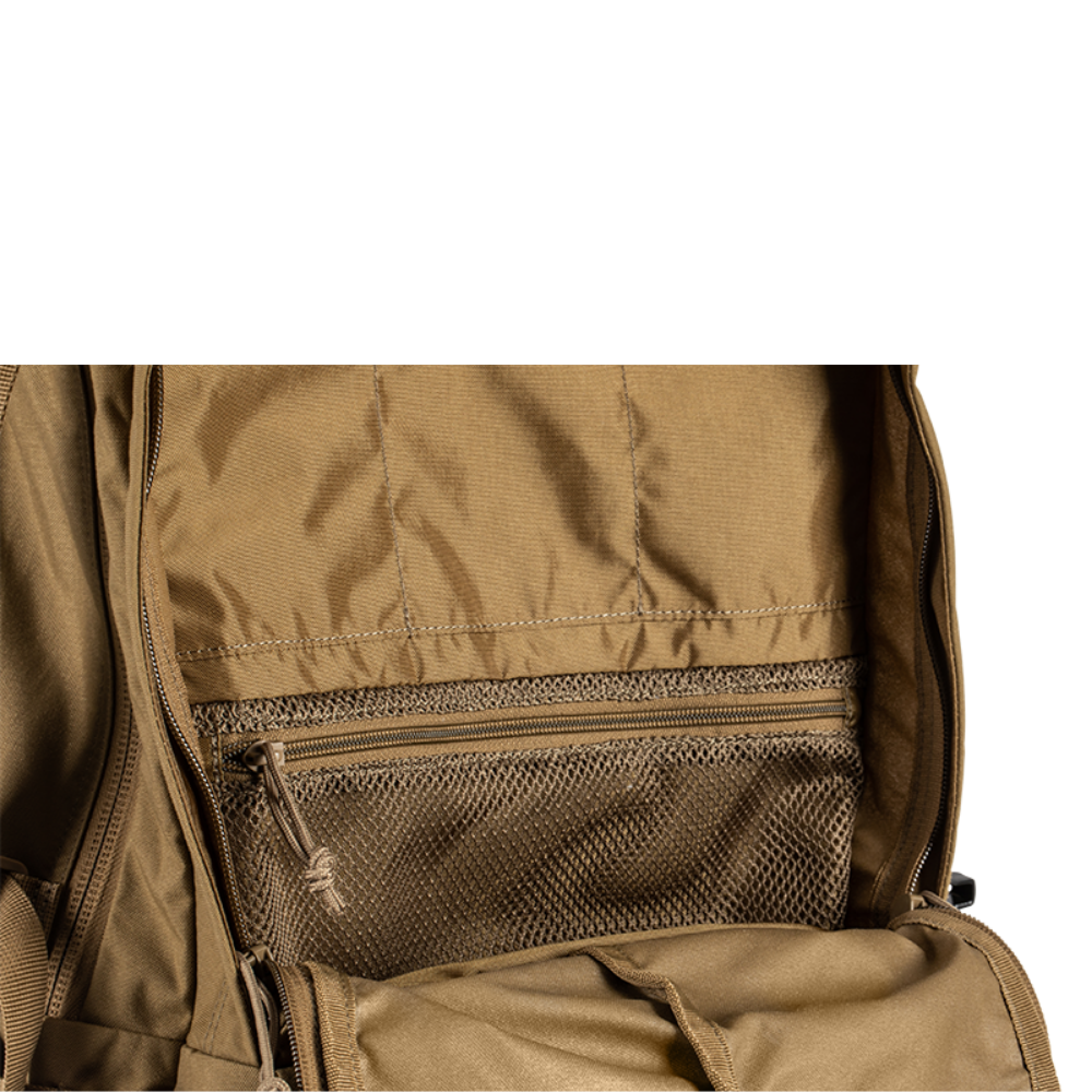 Engineered for heavy loads, the pack features a custom flat aluminum frame with horizontal fiberglass rods for rigidity and load transfer. Comfort is prioritized through an adjustable shoulder strap system, load lifters, and a removable load-bearing waist belt that keeps essential gear accessible. With a rugged 500D Nylon body and reinforced 1050D base, the RUSH100 is built to withstand the rigors of the field while keeping your gear organized and aligned.