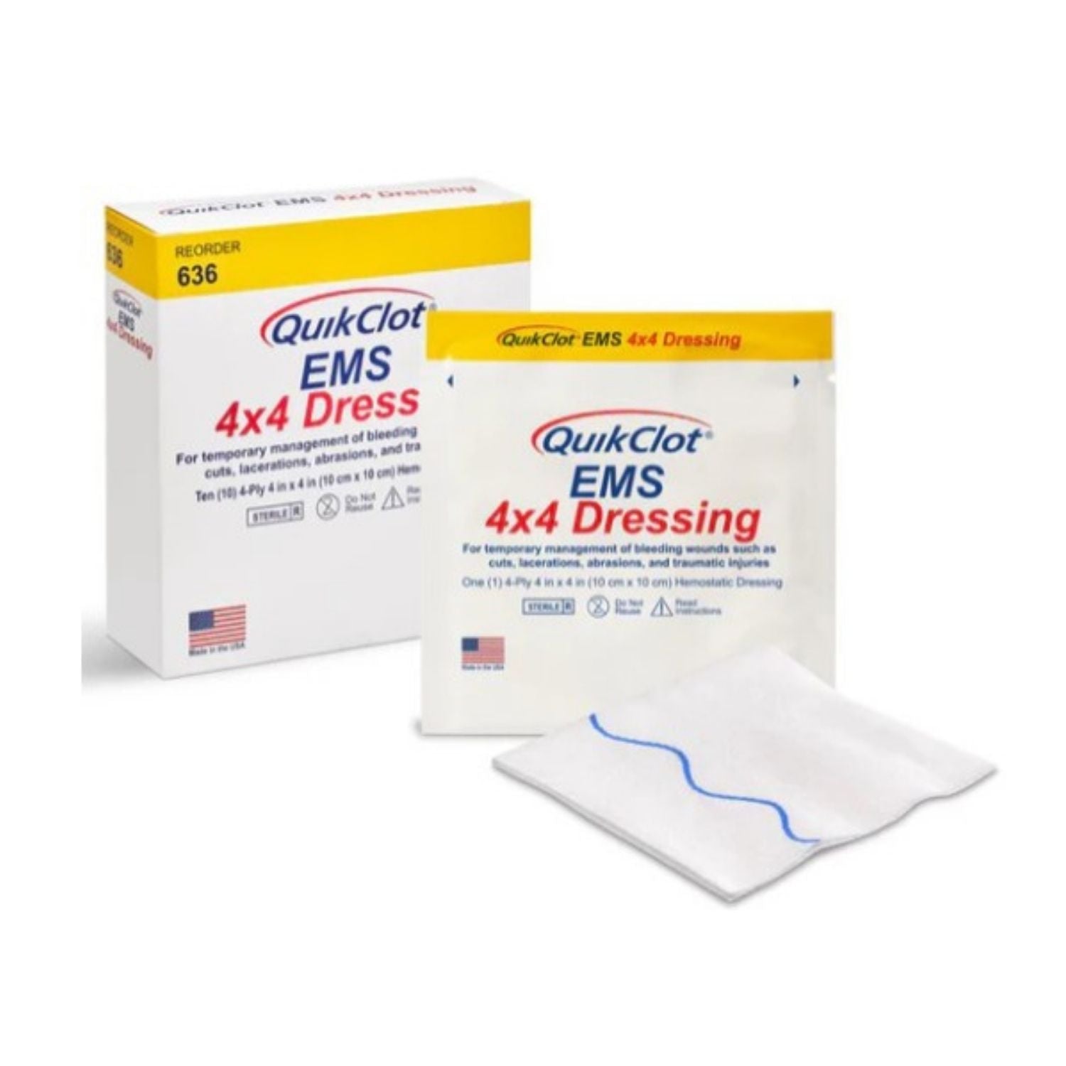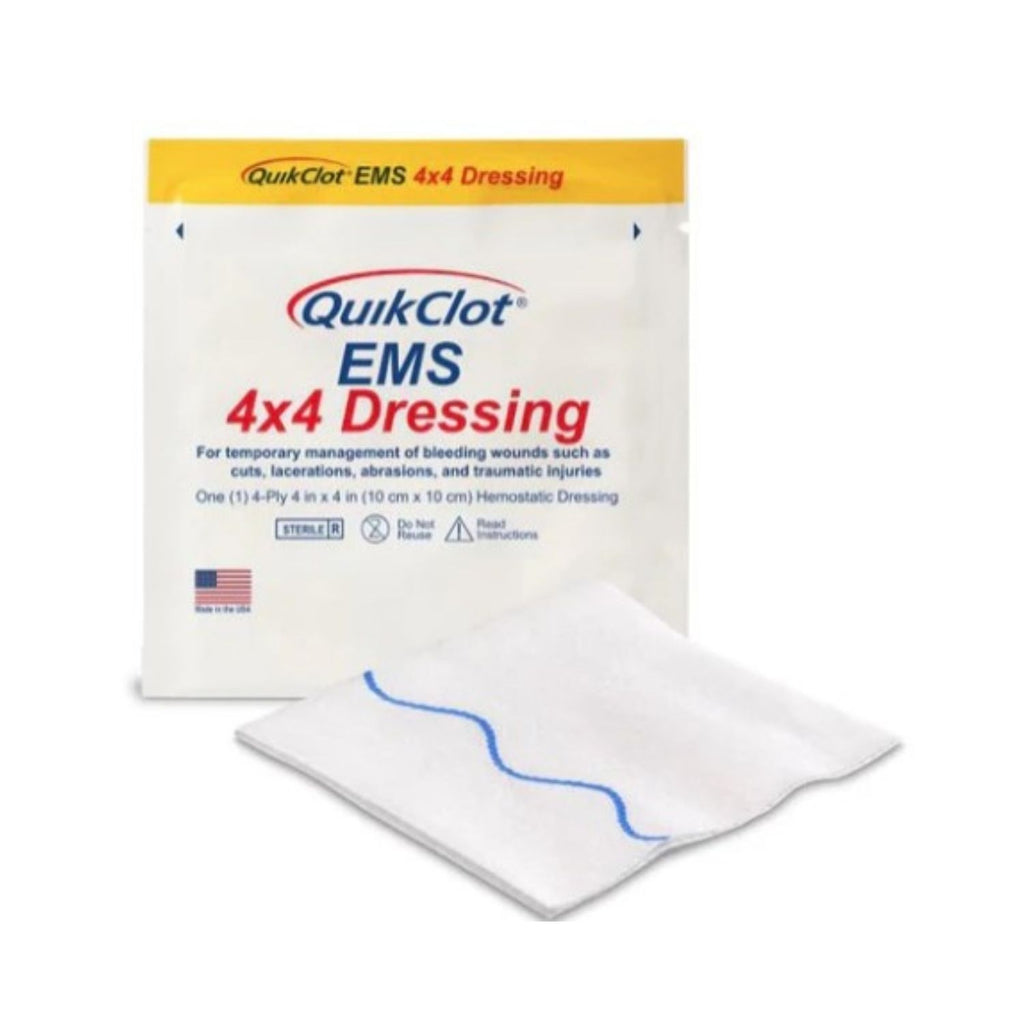 QuikClot EMS 4x4 Dressings are advanced hemostatic dressings designed to rapidly stop bleeding in emergency situations. Leveraging advanced clotting technology, these sterile dressings are compact, lightweight, and essential for first responders, paramedics, and trauma kits. The QuikClot EMS 4x4 Dressing is a sterile non-woven 4-ply gauze pad that is impregnated with the active ingredient in all QuikClot's products: kaolin.
